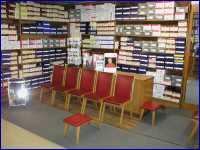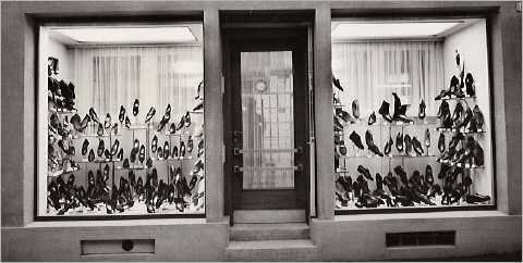 Seit über 120 Jahren: Schuhhaus Müller & Mussler Eine Ecker der Herrenverkaufsabtelung: Gern und viel gekaufte Markenschuhe bis unter die Decke gestapelt.